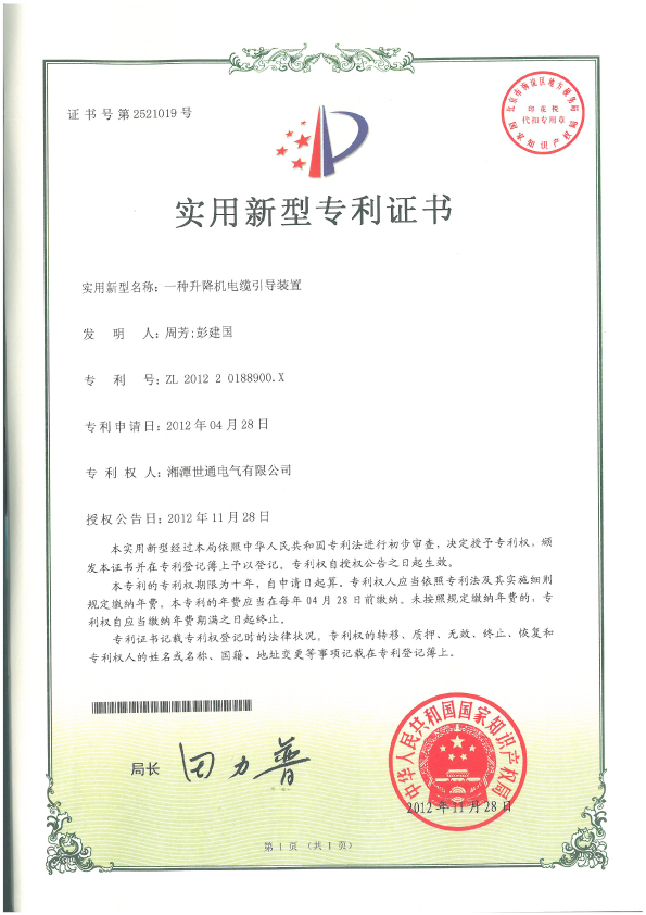 ◆ 本公司塔筒專用升降機(jī)獲得多項(xiàng)國家專利